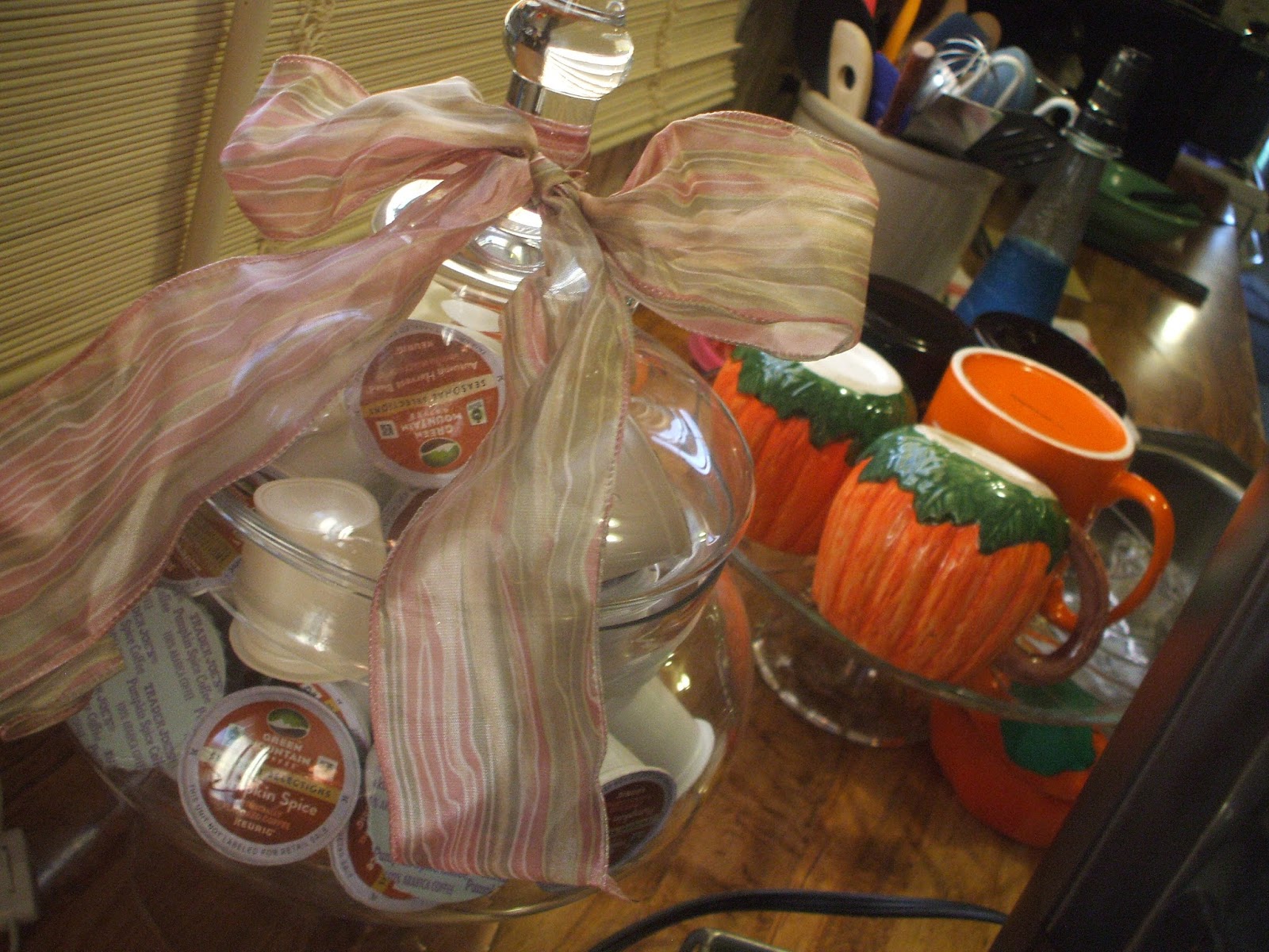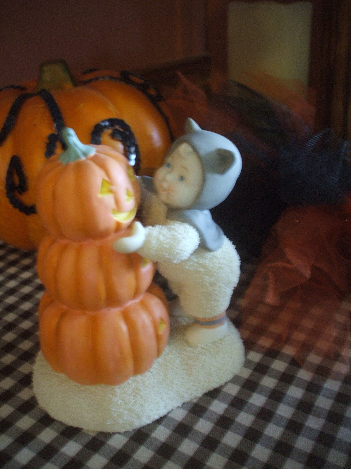 Now, Lucy just loves this time of year & when I start to decorate (& take down) all these holiday decorations. She has to sniff everything & closely inspect, when necessary. Here she is during another holiday season (Easter)!